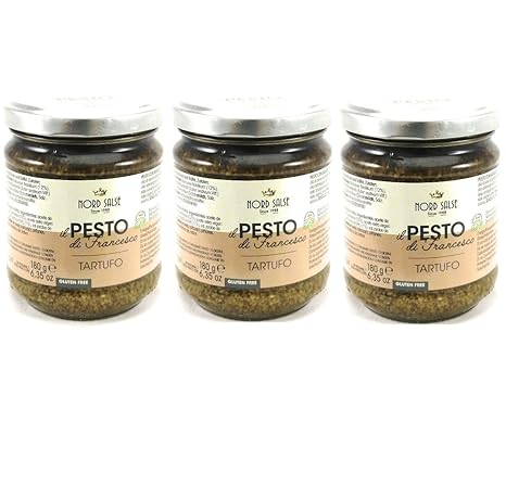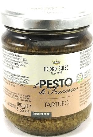 Echtes Italienisches Pesto Genovese Mit Basilikum 180g Glass Cashew Nussen Mandeln Und Truffel Basilikumpesto Truffelpesto Aus Italien Amazon De Lebensmittel Getranke